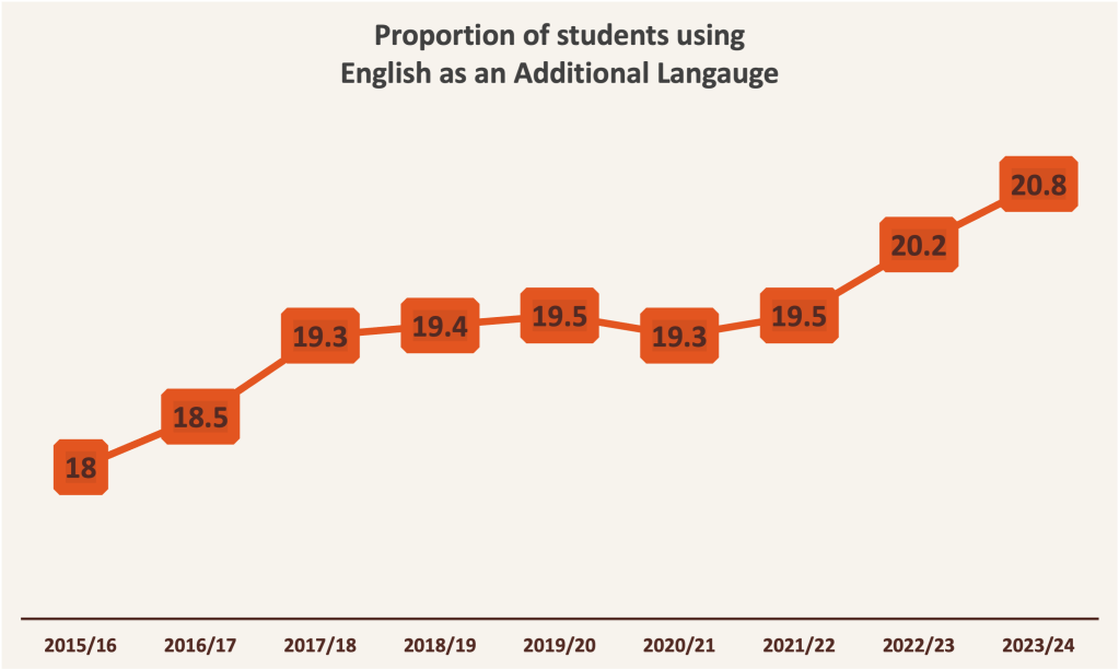 The EAL label can make it seem like speaking English in addition to another language is an exception or a rarity. Yet, the proportion of children in English schools classed as EAL has been steadily rising over recent years.